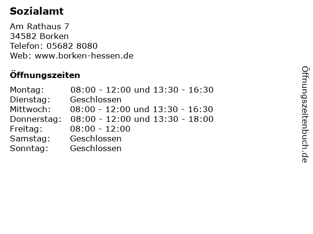 | Öffnungszeiten Sozialamt in Borken anzeigen | |