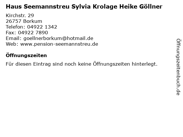 | Haus Seemannstreu Sylvia Krolage Heike Göllner anrufen | |