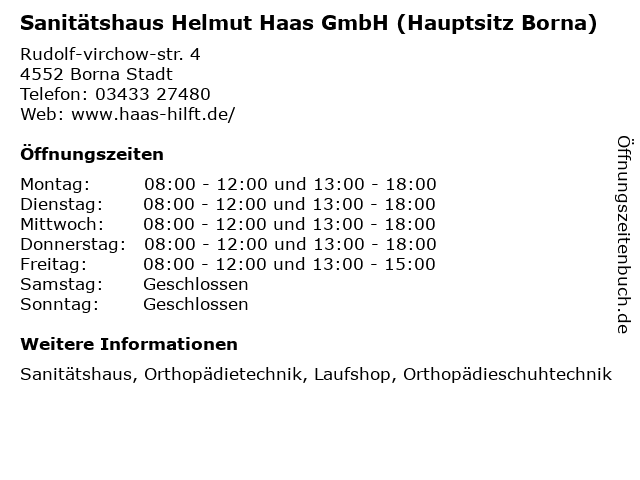 Branchen & Suchbegriffe zu Sanitätshaus Helmut Haas GmbH (Hauptsitz Borna):haas, hauptsitz, helmut, sanitätshaus |