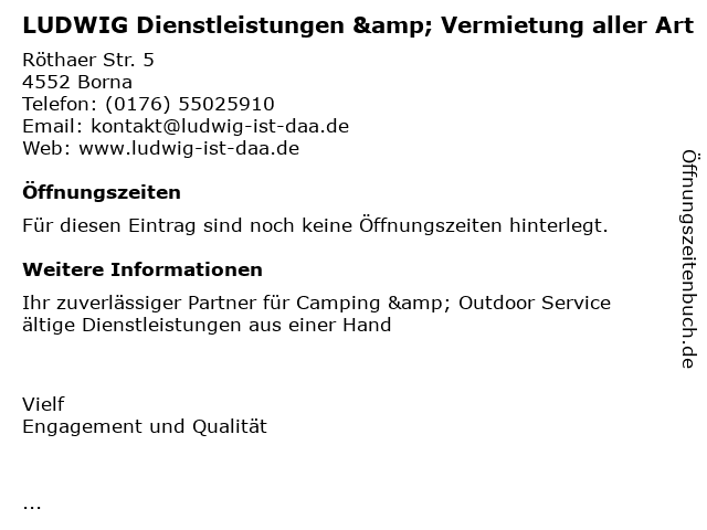 | LUDWIG Dienstleistungen & Vermietung aller Art anrufen | |