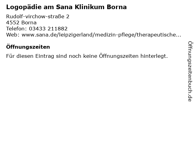 | Logopädie am Sana Klinikum Borna anrufen | |