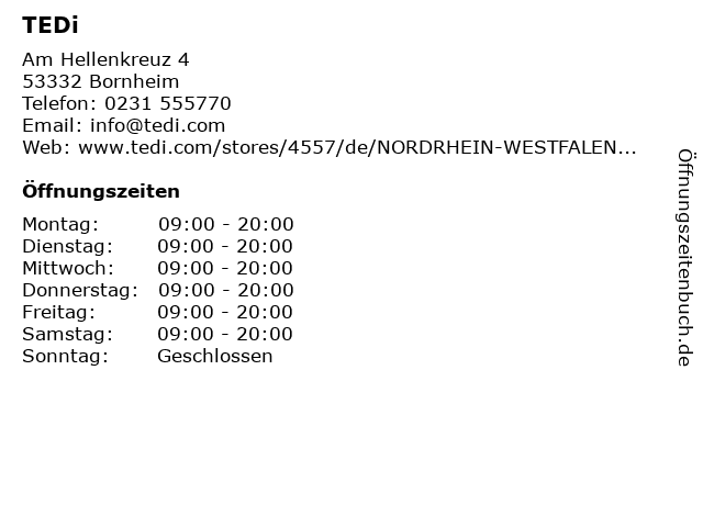 | Öffnungszeiten TEDi in Bornheim anzeigen | |