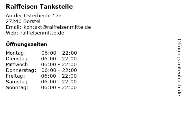 | Öffnungszeiten Raiffeisen Tankstelle in Borstel anzeigen | |