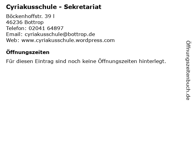 | Öffnungszeiten Cyriakusschule - Sekretariat in Bottrop anzeigen | |