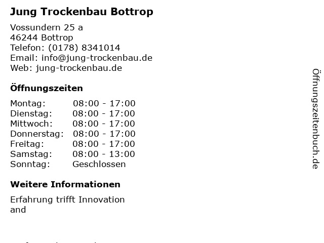 | Öffnungszeiten Jung Trockenbau Bottrop in Bottrop anzeigen | |