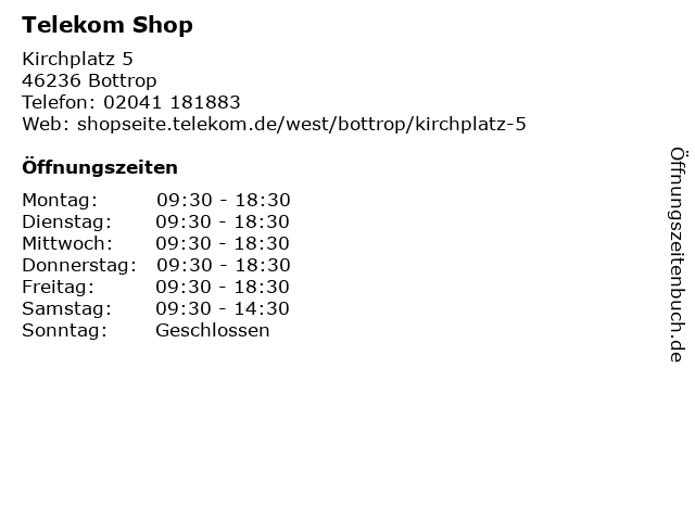 | Öffnungszeiten Telekom Shop in Bottrop anzeigen | |
