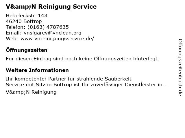 Öffnungszeiten V&N Reinigung Service in Bottrop anzeigen | |