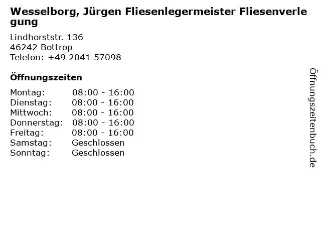 2 Fliesenfachgeschäft Bernhard Schulte Fliesenverlegung (Entfernung: 1,45 km) Werkstraße 4, 46240 Bottrop 6 |