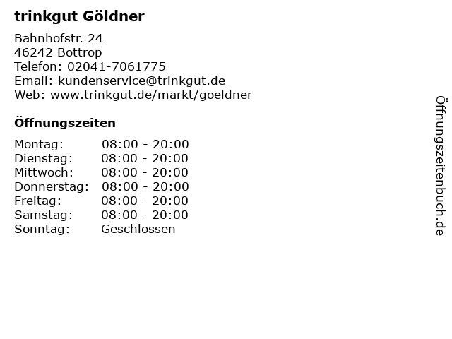 | Öffnungszeiten trinkgut Göldner in Bottrop anzeigen | |