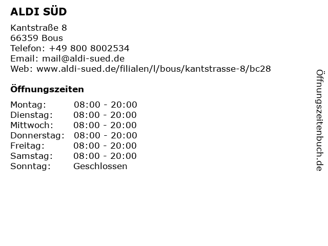 | Öffnungszeiten ALDI SÜD in Bous anzeigen | |