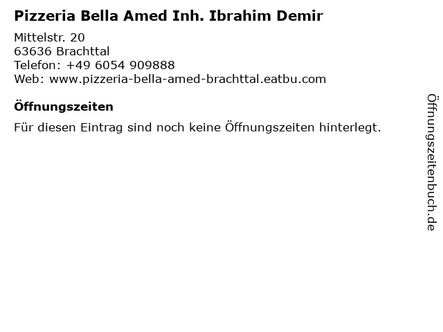 | Pizzeria Bella Amed Inh. Ibrahim Demir anrufen | |