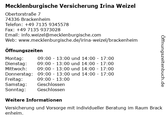2 Mecklenburgische Versicherung Bodo Tutschek (Entfernung: 9,07 km) Besigheimer Straße 40, 74369 Löchgau 3 Kosmetikstudio Flein Beauty & Boutique Irina Hahn (Entfernung: 11,23 km) Erlachstraße 21, 74223 Flein 4 Mecklenburgische Versicherungsgruppe Bezirksdirektion (Entfernung: 13,01 km) Bahnhofstr. 1, 74072 Heilbronn 6 Mecklenburgische Versicherung Ibrahim Yazgan (Entfernung: 14,52 km) Stuttgarter Straße 39, 74321 Bietigheim-Bissingen |