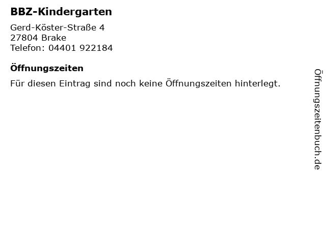 Öffnungszeiten BBZ-Kindergarten in Brake anzeigen | |
