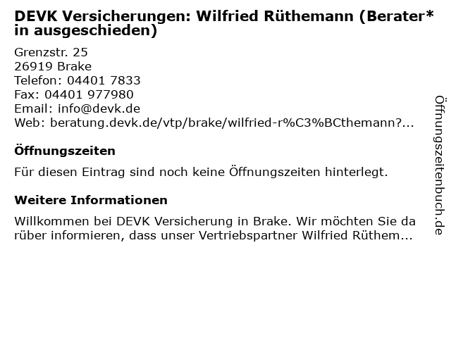 | DEVK Versicherungen: Wilfried Rüthemann (Berater*in ausgeschieden) anrufen | |
