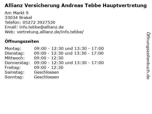 2 Allianz Versicherung Serdar-Denis Sancak Hauptvertretung (Entfernung: 14,31 km) Lange Straße 2, 37688 Beverungen 3 Allianz Versicherung Guido Reichmann Hauptvertretung (Entfernung: 15,11 km) Hennekenstraße 6, 37671 Höxter 4 Allianz Versicherung Ina Hegemann Hauptvertretung (Entfernung: 17,85 km) Hollentalstraße 11, 32839 Steinheim 5 Allianz Versicherung Ina Hegemann-Notthoff Hauptvertretung (Entfernung: 17,85 km) Hollentalstraße 11, 32839 Steinheim 6 |