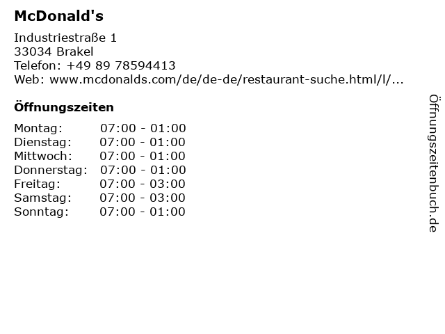 | Öffnungszeiten McDonald's in Brakel anzeigen | |