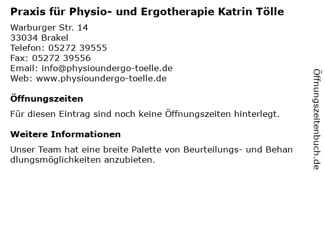 | Praxis für Physio- und Ergotherapie Katrin Tölle anrufen | |