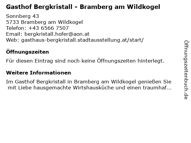 | Gasthof Bergkristall - Bramberg am Wildkogel anrufen | |