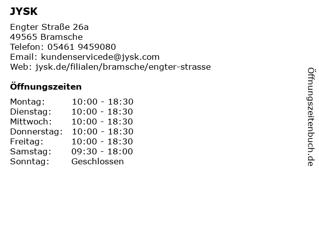 | Öffnungszeiten JYSK in Bramsche anzeigen | |
