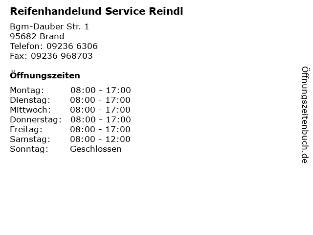 | Öffnungszeiten Reifenhandelund Service Reindl in Brand anzeigen | |