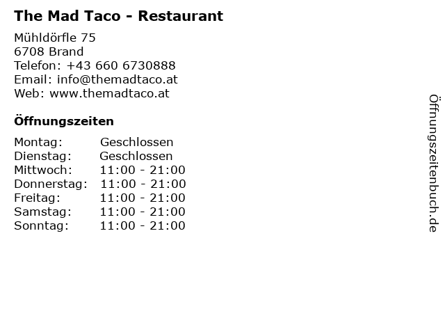 | Öffnungszeiten The Mad Taco - Restaurant in Brand anzeigen | |