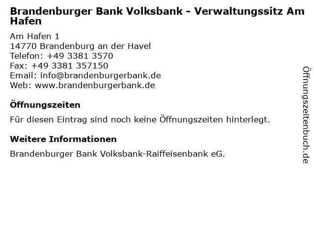 | Brandenburger Bank Volksbank - Verwaltungssitz Am Hafen anrufen | |