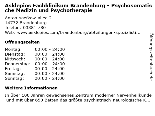 Branchen & Suchbegriffe zu Asklepios Fachklinikum Brandenburg - Psychosomatische Medizin und Psychotherapie:asklepios, fachklinikum, medizin, psychosomatische, psychotherapie |