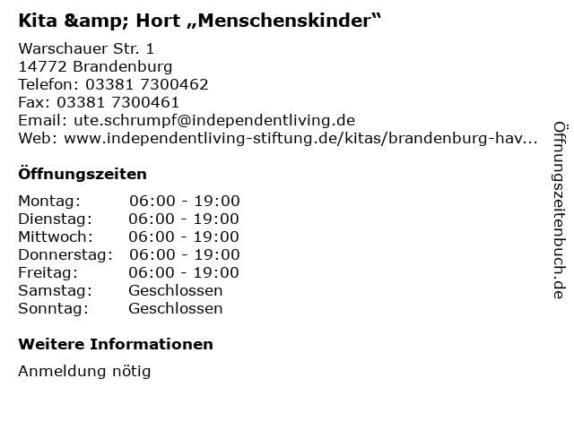 1 Independent Living f.eine kinderfreundliche Welt e.V. Hort - J.-H.-Pestalozzi (Entfernung: 0,83 km) Walther-Ausländer-Straße 1, 14772 Brandenburg 3 Blubberlutsch in der Kita Klecks - Wir e.V. (Entfernung: 2,17 km) Friedrich-Engels-Straße 39, 14770 Brandenburg 5 Kita Sonnenschein - Schenkenberg (Entfernung: 12,68 km) Heiderosenweg 1 a, 14550 Groß Kreutz (Havel) OT Schenkenberg 6 |