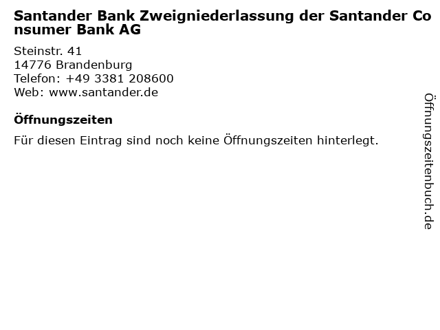 | Santander Bank Zweigniederlassung der Santander Consumer Bank AG anrufen | |