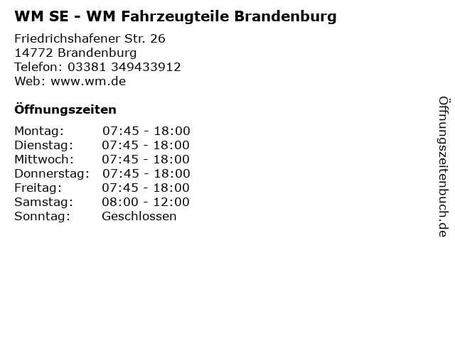 Branchen & Suchbegriffe zu WM SE - WM Fahrzeugteile Brandenburg:fahrzeugteile, se, wm |