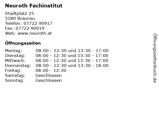 | Öffnungszeiten Neuroth Fachinstitut in Braunau anzeigen | |