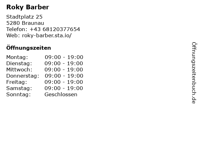 | Öffnungszeiten Roky Barber in Braunau anzeigen | |