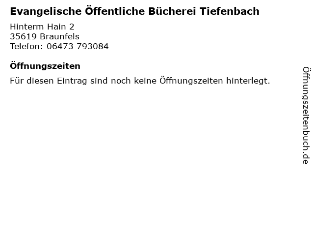 | Evangelische Öffentliche Bücherei Tiefenbach anrufen | |