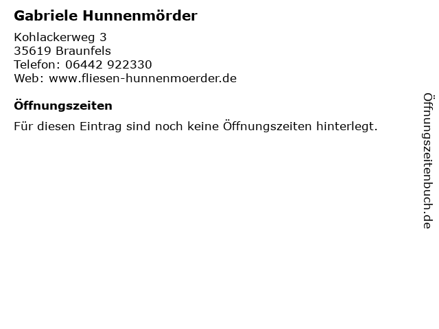 | Öffnungszeiten Gabriele Hunnenmörder in Braunfels anzeigen | |