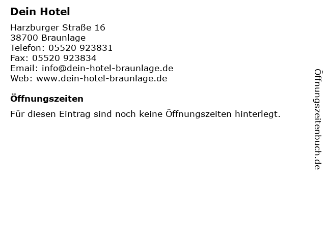 | Öffnungszeiten Dein Hotel in Braunlage anzeigen | |