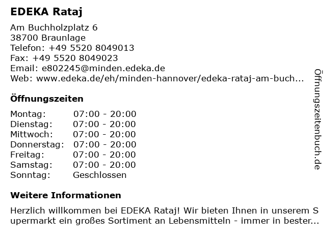 | Öffnungszeiten EDEKA Rataj in Braunlage anzeigen | |