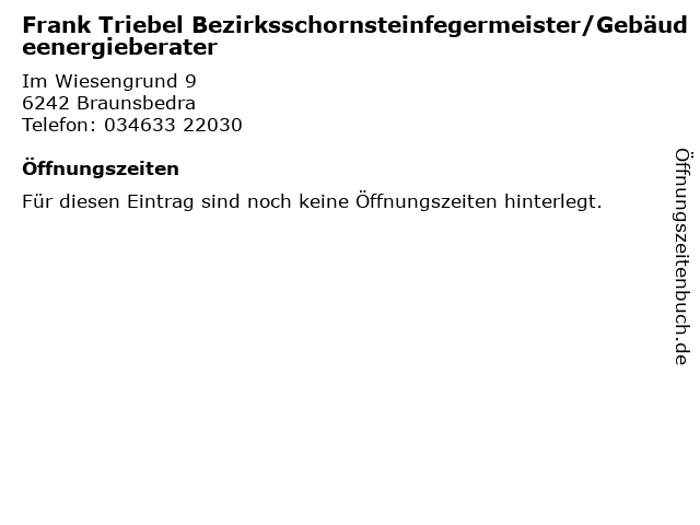 | Frank Triebel Bezirksschornsteinfegermeister/Gebäudeenergieberater anrufen | |