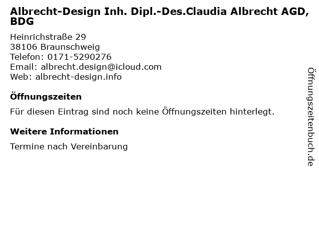 | Albrecht-Design Inh. Dipl.-Des.Claudia Albrecht AGD,BDG anrufen | |