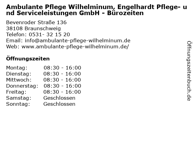 Branchen & Suchbegriffe zu Ambulante Pflege Wilhelminum, Engelhardt Pflege- und Serviceleistungen GmbH - Bürozeiten:ambulant, ambulante, bürozeiten, engelhardt, pflege, pflegeleitungen, serviceleistungen, wilhelminum |