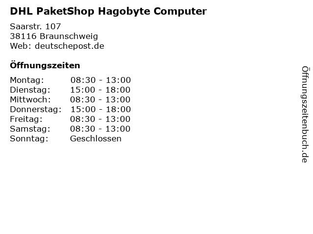 | Öffnungszeiten DHL PaketShop Hagobyte Computer in Braunschweig anzeigen | |