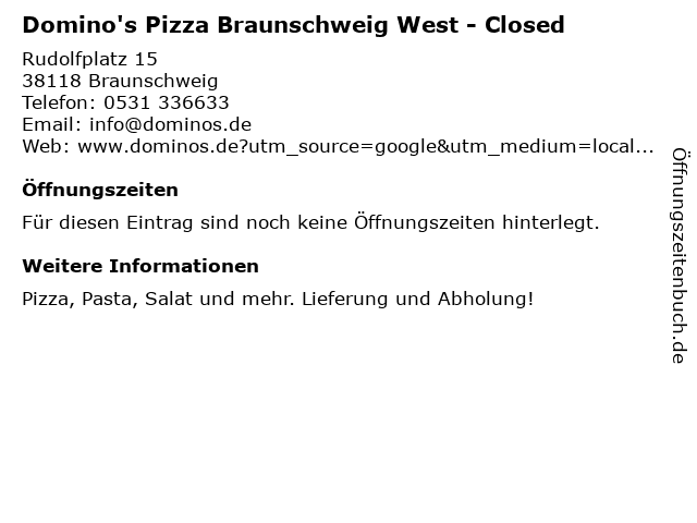| Domino's Pizza Braunschweig West - Closed anrufen | |