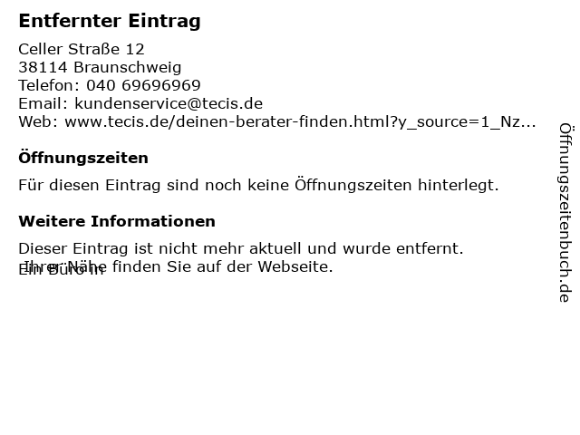 | Öffnungszeiten Entfernter Eintrag in Braunschweig anzeigen | |