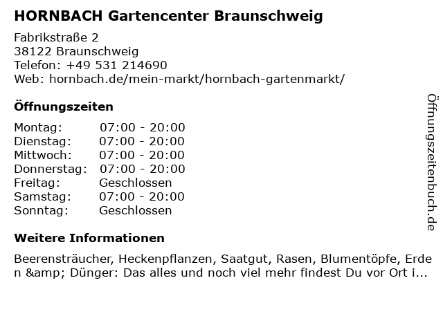 Branchen & Suchbegriffe zu HORNBACH Gartencenter Braunschweig:gartenausstellung, gartencenter, gartenfachmarkt, gartenmarkt, gärtnerei, hornbach |