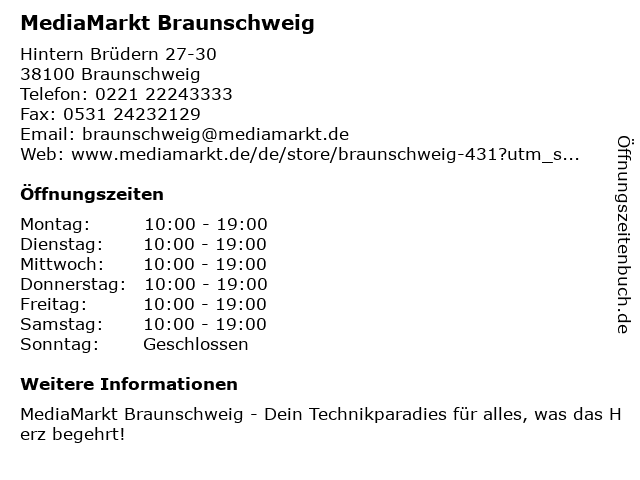Öffnungszeiten MediaMarkt Braunschweig in Braunschweig anzeigen | |