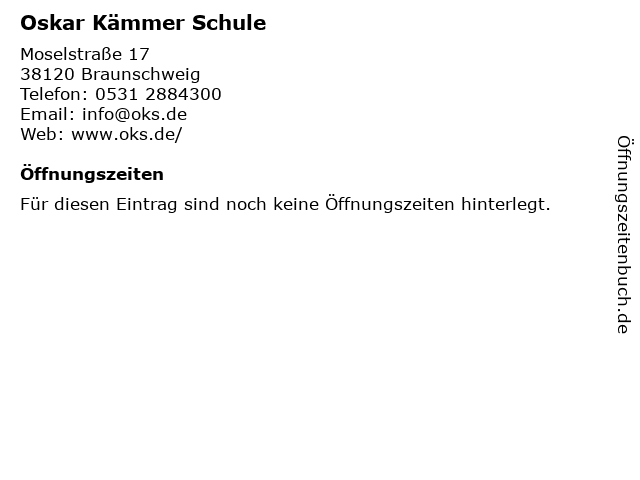 | Öffnungszeiten Oskar Kämmer Schule in Braunschweig anzeigen | |