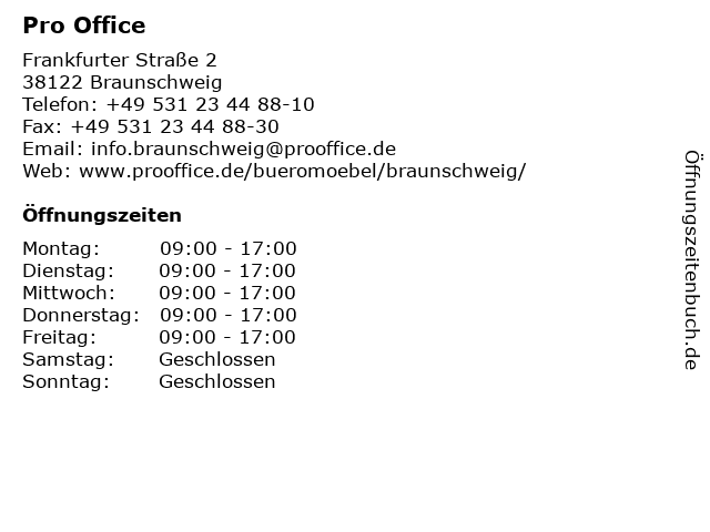 | Öffnungszeiten Pro Office in Braunschweig anzeigen | |