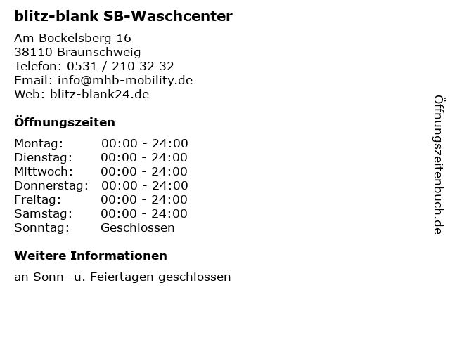 Öffnungszeiten blitz-blank SB-Waschcenter