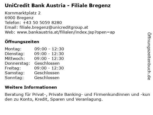 Branchen & Suchbegriffe zu UniCredit Bank Austria - Filiale Bregenz:austria, bank, bregenz, privat-, private banking- und firmenkundinnen und -kunden, unicredit |
