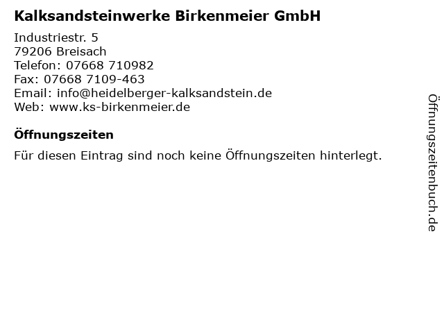 | Kalksandsteinwerke Birkenmeier GmbH anrufen | |