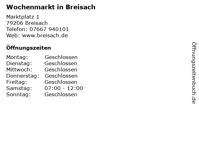 | Öffnungszeiten Wochenmarkt in Breisach in Breisach anzeigen | |